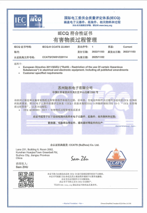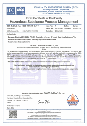 | IECQ QC080000:2017 | 有害物質管理 | IECQ-H CCATS 22.0041 |