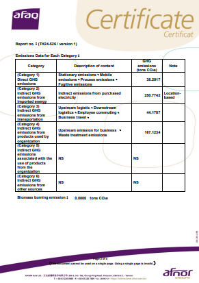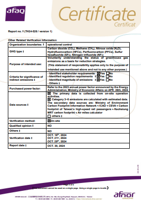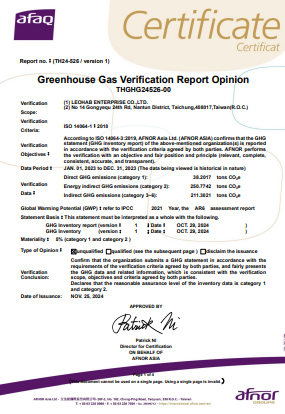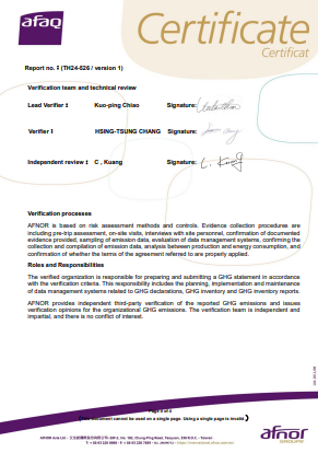| ISO 14064-1:2018 | 溫室氣體核查 | 04125GHGA20056 |