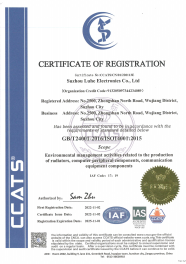 | ISO 14001:2015 | 環境管理體系 | CCATS/CN/01/220113E |