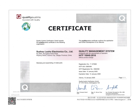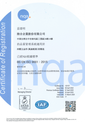 | IATF 16949:2016 | 汽車質量管理體系 | T-127080 (IATF註冊號:0562358) |